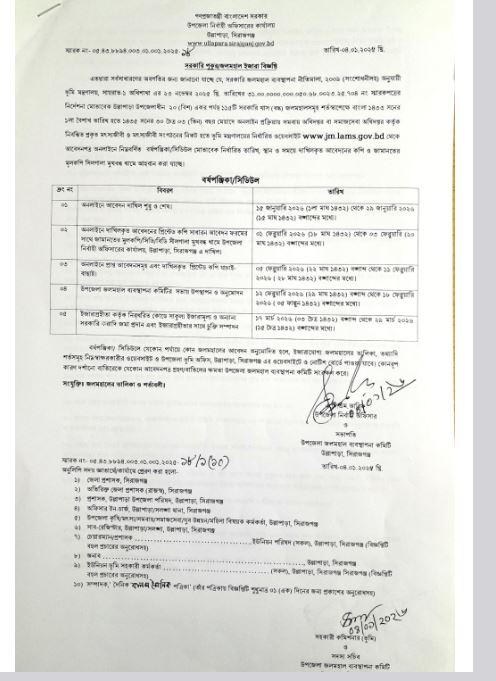সরকারি পুকুর/জলমহাল ইজারা বিজ্ঞপ্তি